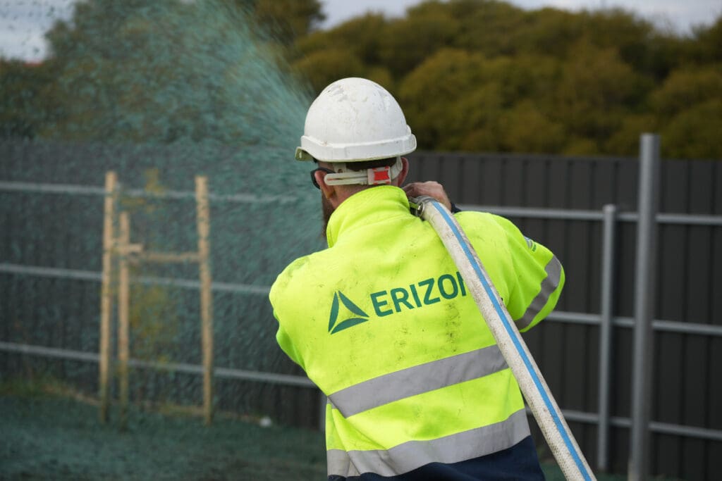 Hydromulch plays the role of maintaining the appropriate soil conditions for seed germination. It not only protects the soil from erosion but also extreme weather events, it regulates the % humidity in the soil and runoff, and keeps nutrients in balance.